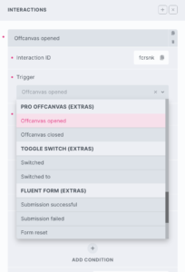 This element has it’s own interaction settings. Refer the interactions tab below for the list of element-specific triggers and/or actions.