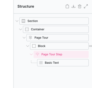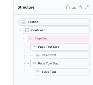 Note that the tour is not live when viewing inside the builder, simply click on the steps inside the structure panel to preview and edit each step.