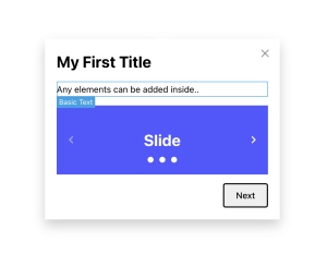 You can also add an optional title that will appear above the content. The rest of the step popover is nestable, so you’d add elements inside it to populate it with content.