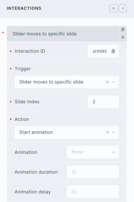 This element has it’s own interaction settings. Refer the interactions tab below for the list of element-specific triggers and/or actions.