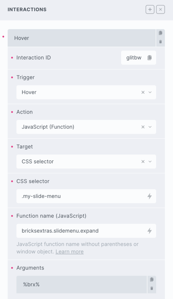 Note that ‘Element Interactions’ must be enabled in BricksExtras > Misc settings.