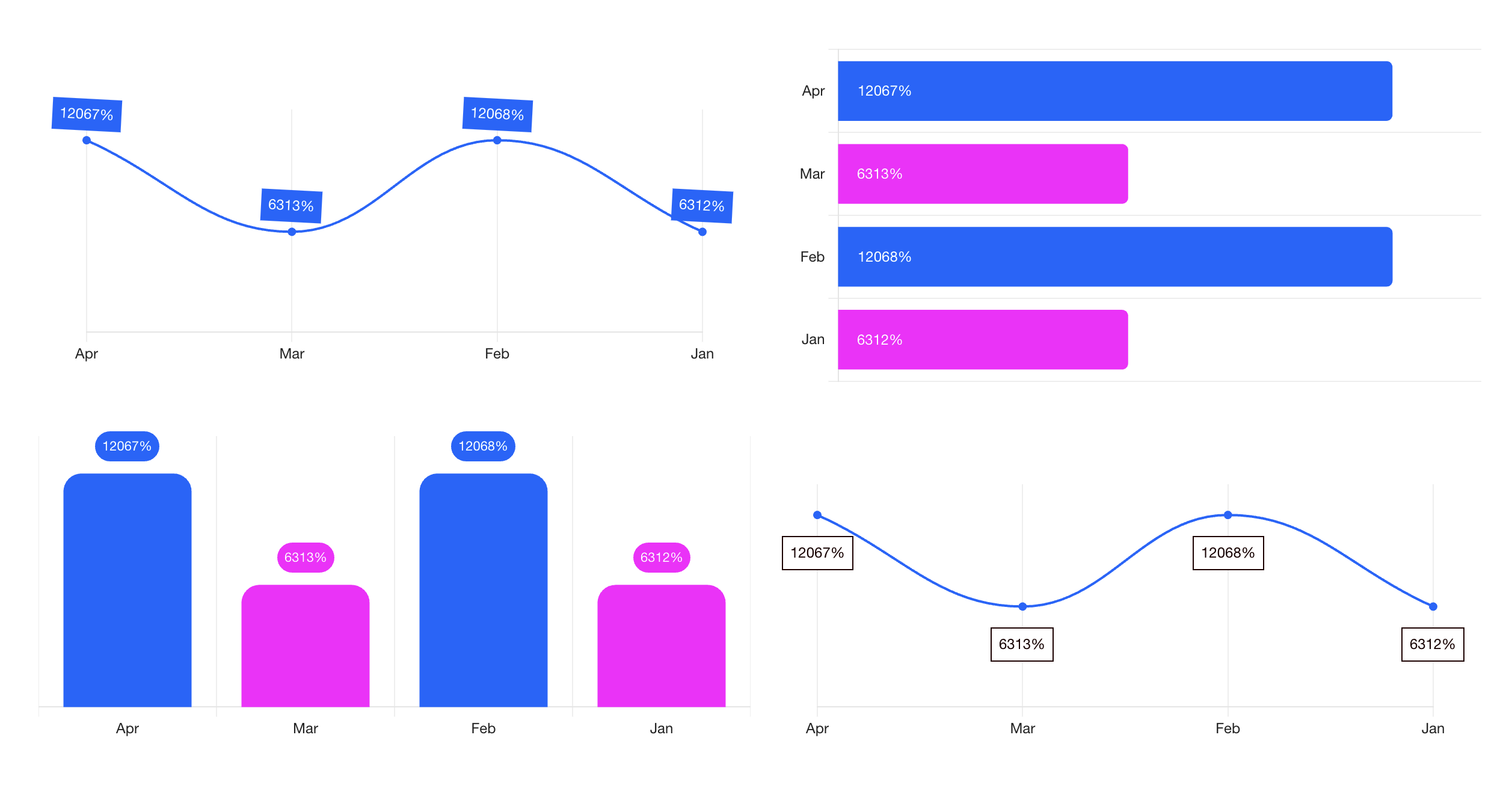 All the chart types now have the option to add data labels within the charts. This provides a much more visual way to see the values at a glance inside the charts themselves, where as previously the values were limited to displaying within the axis lines. RTL support has also been added to the charts.