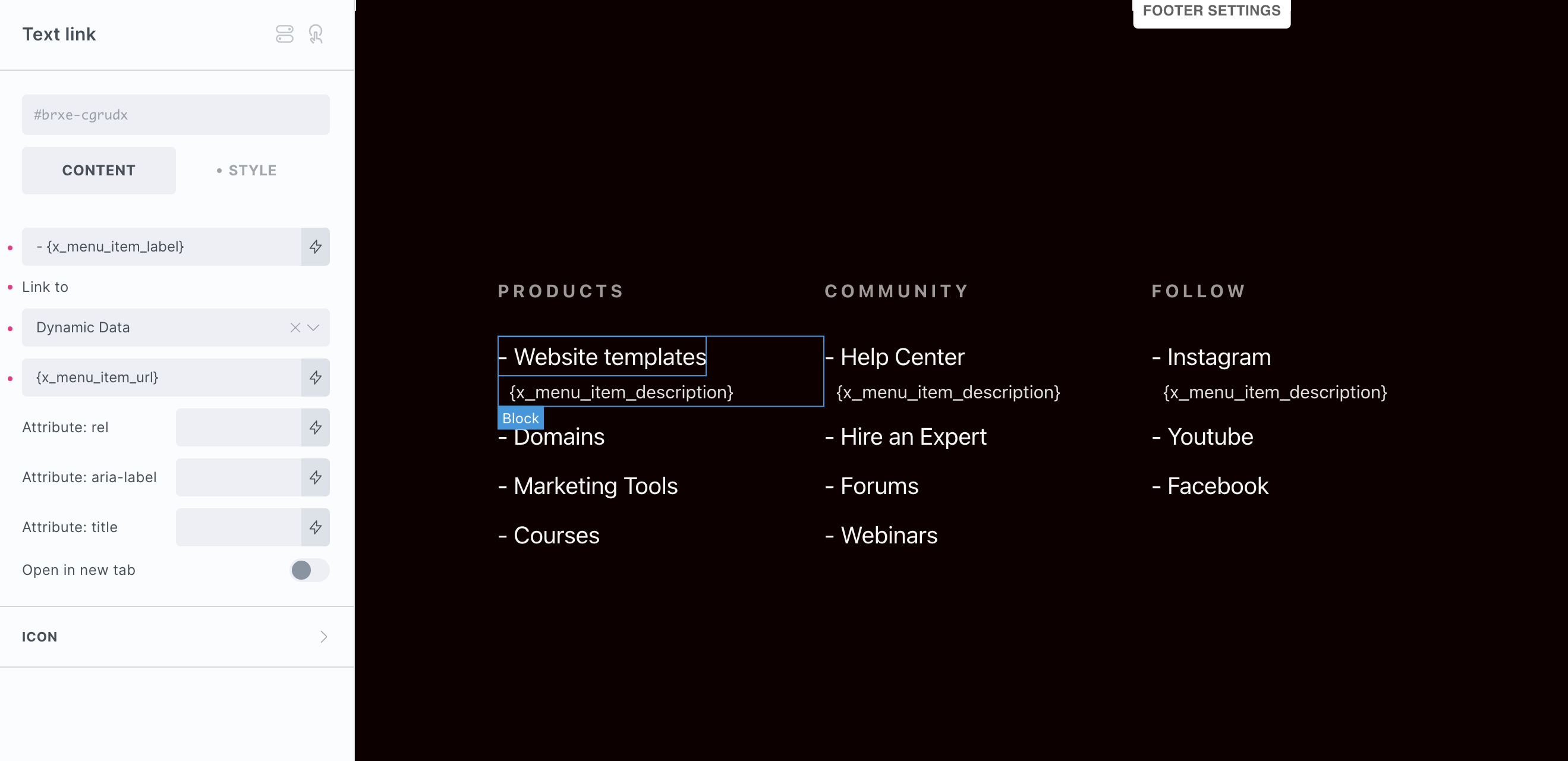 It is now really easy to add dynamic menu lists for areas of your site, such as in the footer menus or inside mega menu structures, where you need a list of dynamic menu items but don’t need a fully structured menu element.